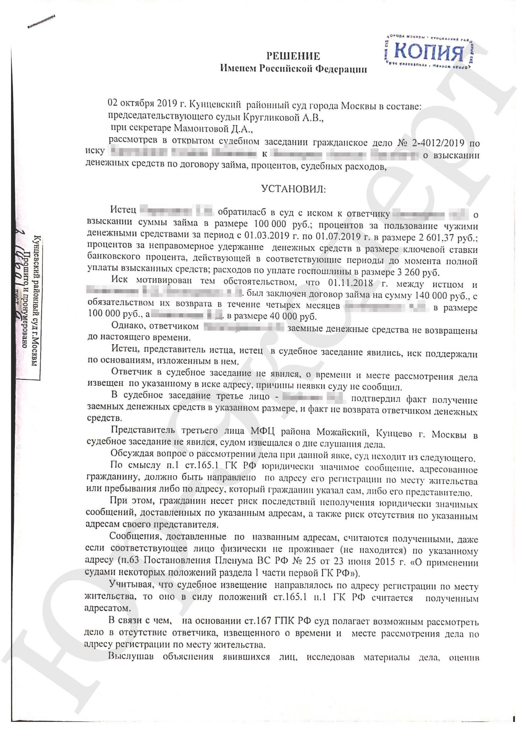 В судебном заседании третье лицо — подтвердил факт получение заемных денежных средств в указанном размере, и факт не возврата ответчиком денежных средств.
